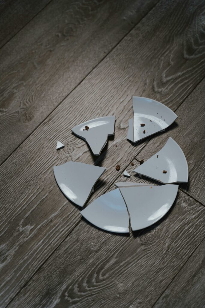 He snatched the plate from my hands. It slipped, hit the floor, and cracked.